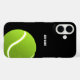 Joli et élégant coque avec balle de tennis verte sur arrière - plan noir.