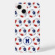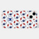 Ce coque iphone amusant à thème football présente un simple motif de balles de football qui ont des panneaux rouges, bleus et blancs sur un arrière - plan blanc personnalisable - customisez avec le monogramme de l'athlète - par katz_d_zynes