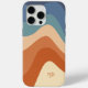 Coque iphone super rétro et coloré à l'ambiance cool, ce design présente des rayures ondulées dans un mélange de couleurs chaudes et cool. Les couleurs sont le bleu, la terre cuite et le beige. Un modèle texte est inclus pour personnaliser avec vos initiales monographiques.