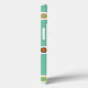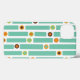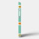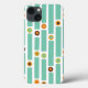 Ce boîtier téléphonique a un design rétro des années 1970 de bandes bleues interrompues par des cercles en marron, orange et vert.