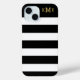 Protégez et accessoire votre téléphone avec un design rayé chic! Ce coque présente des rayures noires et blanches audacieuses avec des initiales monographiques de couleur or que vous pouvez personnaliser.