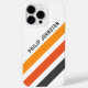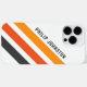 coque iphone avec trois bandes diagonales en gris foncé et deux nuances d'orange sur un arrière - plan blanc et votre nom personnalisé dans une police sans serif audacieuse et moderne.