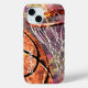 Basketball iPhone coque robuste pour les filles avec des graphismes de basket et de cerceau qui a reçu des accents girly dans les tons de violet rose et bien sûr orange - personnaliser avec son nom- par katz_d_zynes | Vous pouvez aussi aimer ma collection "Basketball Team couleurs cadeaux for girls" >> https://www.zazzle.com/collections/119901188031358626