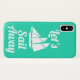 Voyageons à voile le boîtier de téléphone silhouette de voilier nautique avec une couleur arrière - plan vert mer audacieuse.