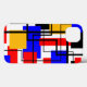 Ce boîtier téléphonique a une conception Bauhaus de rectangles et de carrés avec des lignes noires traversant la conception sur un champ de blanc.