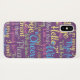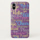 Boîtier de téléphone décoratif pour un amateur de mots. Conception du libellé en anglais. Conception de bavardage dans différentes couleurs sur un étui de téléphone violet.