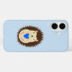 Cette coque de téléphone iPhone géniale présente une image d'art numérique d'un adorable bébé hérisson brun épineux avec des paupières brunes et un grand sourire, tenant un cœur bleu. Un excellent design pour célébrer un bébé garçon.