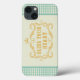 Boîtier de téléphone mignon avec une touche de charme du Sud, avec texte "bénis ton coeur" en or dans cadre chic et bordures en vichy bleu vintage.
