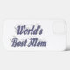 Phone case with World's best Mom in 3D blue-gray text. Available for several phone styles.