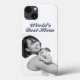 Phone case with World's best Mom with your own photo and 3D blue-gray text. Available for several phone styles.