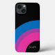 Belle fierté bisexuelle iPhone 13 cadeau coque pour un ami bi avec les jolies couleurs de drapeau bisexualité façonné en arc-en-ciel bleu, violet et rose. Un monogramme cool de téléphone queer cas présent.