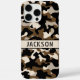 Customize this black and brown camouflage iPhone 16 pro max case with your name in a trendy modern CAP font in black on cream. It's masculine and perfect for your favorite military, hunting, country or outdoorsman!