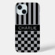 Coques Case-Mate iPhone Black and Gray Checkered Striped Personalized