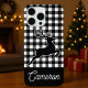 Coques Case-Mate iPhone Black and White Plaid with Reindeer Custom Name