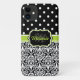 Coques Case-Mate iPhone Black Green Monogramme Damask Pois Motif