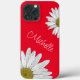 Coque, avec marguerites blanches sur un arrière - plan rouge. Avec la typographie de script mignonne en lettres blanches, vous pouvez personnaliser avec votre propre texte. Une excellente façon d'ajouter une touche botanique à votre électronique !
