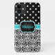 Coques Case-Mate iPhone Bleu clair Monogramme Damask Pois Motif