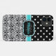 Elégant motif damassé noir et blanc avec motif pois. Ce cadeau à la mode féminin comprend une plaque d'identité noire, bleu clair et blanche pour votre nom personnalisable et monogramme. Cela ferait un cadeau d'anniversaire cool pour les filles ou un cadeau de Noël pour elle. Autres options de couleur