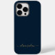 Coques iphone élégants bleu doré personnalisé, avec police jaune sur la couleur arrière - plan bleue. Pour un cadeau personnalisé Parfait. Personnalisez-le maintenant ; cliquez sur le bouton personnaliser pour ajouter votre nom.