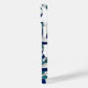 Ce coque iphone de volleyball pour filles propose des volleyballs turquoises de tailles variées, bleu marine et blanc arrangés dans un motif aléatoire sur un arrière - plan blanc personnalisable - personnaliser avec son monogramme, lettre de varsity ou numéro de maillot - par katz_d_zynes
