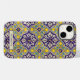 Coques Case-Mate iPhone Bleu personnalisé Motif méditerranéen Fleurs jaune