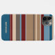 Contemporain turquoise foncé, bleu clair, beige, tan, marron foncé et rouge bordeaux rayures motif. Avec la possibilité de customiser avec un nom, un monogramme ou des initiales de votre choix. Belle couverture moderne et cool pour le brancheur tendance et amateur d'art branché, amoureux de motifs artistiques qui veut protéger leur téléphone de la poussière et de la saleté, de l'usure et de la déchirure. Cette conception est disponible en Apple iPhone 6, 7, 8, 10 ou X, XR, XS, 11, 12, 13 Mini, 14, 15 Plus, et coques de téléphones portables Pro Max. Montrez votre style, regardez à la mode et sentez élégant avec un design unique sur un appareil mobile de votre choix.