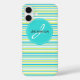 Coques Case-Mate iPhone Bleu vert simple élégance Grilles Nom du monogramm