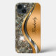 Conception élégante de coque de smartphone pour iPhone créée avec un motif de bijoux scintillants simulés imprimés numériquement sur la couverture avec un emblème de monogramme argent et or que vous pouvez personnaliser à votre goût. Transportez votre téléphone portable dans un style de glamour et de luxe avec une touche de bling.