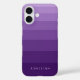 Chic, simple blocs de couleur monochromatique ou rayures dans les tons de couleur violet ombre et personnalisé avec un nom, monogramme ou votre texte personnalisé dans votre choix de styles de police. OPTIONS : L'exemple est présenté dans le modèle iPhone 16 et dans le style coque Barely There, les autres modèles de téléphone et le style coque sont affichés sur la page de commande. ASSISTANCE : Pour obtenir de l'aide sur la modification ou la personnalisation de la conception, le changement de couleur, le redimensionnement, le transfert de la conception vers un autre produit ou si vous souhaitez coordonner des éléments, contactez le concepteur AVANT LA COMMANDE via l'onglet MESSAGE Conversation Zazzle ci-dessous ou envoyez un courriel à makeitaboutyoustore@gmail.com.