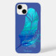 Blue Green Feather Moderne Monogramme Coque-Mate iPhone 14 Coque