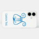 Icône de lyre bleu avec quatre cordes. Texte personnalisé.