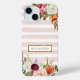 Caisses de téléphone monogrammed personnalisées avec votre nom ou autre texte. Cette conception de chou girly est dotée d'une bordure florale d'aquarelle aux couleurs d'automne rustiques sur un arrière - plan rayé rose vif. Ajoutez votre monogramme dans un simple cadre de feuille d'or. Utilisez les outils de conception pour choisir une couleur arrière - plan, modifier les polices de texte et les couleurs ou ajouter vos propres photos pour créer un design coque d'une nature agréable.