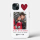 Faire-part Whimsical Boho Fiançailles design pour votre coque iphone. La photo de votre couple est placée au centre. Deux lignes de texte ci-dessous, laissez-vous customiser votre message joyeux. La flèche d'un boho Cupid se trouve en dessous. Un coeur rouge orné de lignes criardes contient vos initiales. Tout le début de la conversation !