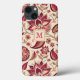 Boho Floral Deep Berry Pink sur crème Monogram iPhone 13 Coque. Personnalisez le boîtier téléphonique avec votre monogramme ou votre initiale.