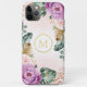 Ce coque présente des fleurs d'aquarelle violette et rose vif et des feuilles de verdure tropicaux. Vous pouvez customiser le monogramme avec votre initiale, changer la police, la couleur et / ou la taille.
