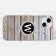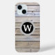 Vous adorerez cette étagère monogramme à l'allure boisée avec un look moderne et tendance! Lettre monogramme blanc en cercles noirs et gris et arrière - plan de lattes de bois.