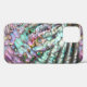 Étui de téléphone iPhone coquille d'abalone rose et vert brillant. La coquille d'abalone est imprimée, ce n'est pas une véritable marqueterie d'abalone.