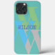 boîtier de téléphone bleu vert minime nom monogramme moderne simple cadeau Coque-Mate coque iphone couleur vive coloré design amusant. Facile à personnaliser. nom personnel Style de police, taille et couleurs peuvent être changés. Éléments correspondants disponibles.
