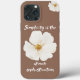 Cette conception de boîtier téléphonique présente une esthétique minimaliste et élégante. Un arrière - plan brun doux sert de toile, avec deux fleurs blanches magnifiquement illustrées dans un style délicat aquarelle. Une grande fleur domine le centre, tandis qu'une plus petite décore subtilement le coin supérieur, créant un attrait visuel équilibré. La citation, "La simplicité est l'ultime sophistication", est affichée en forme calligraphique blanche fluide, renforçant le message d'élégance sous-jacente. L'ensemble dégage une atmosphère calme et naturelle, ce qui en fait un lieu idéal pour ceux qui apprécient à la fois la beauté et la simplicité de leurs accessoires.