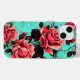 Boîtier de téléphone robuste pour iPhone 15 Case Mate avec une rose rouge et vert floral design.