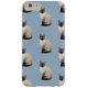 Boîtier téléphonique avec arrière - plan bleu et imprimé chat siamois.