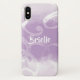 Un chic lavande pastel et blanc abstrait aquarelle tourbillonne motif iPhone X Coque. Personnalisez en ajoutant le nom de votre fille préférée.