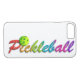 Un logo coloré de pickleball d'amusement dans les parties scintillantes avec des couleurs de rouge, de jaune, de vert, de bleu, de rose et pourpre sur un arrière - plan blanc. Une belle conception pour votre cas de téléphone avec du charme pour votre sport préféré.