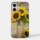 Bouquet de tournesol dans un vase vintage à la texture grossière.