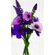 Un bouquet de fleurs violettes dont la lavande et divers pétunias, arrangés avec des tiges vertes et des feuilles. Les fleurs présentent différentes nuances de violet, créant une composition vibrante et colorée contre un arrière - plan transparent.