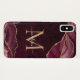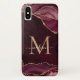 Glam moderne Bourgogne Rouge Or Parties scintillant étincelante Agate Géode Élégante Feminine Monogramme Script Nom Téléphone Case