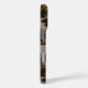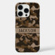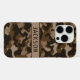 Customize this multi-hued brown camouflage iPhone 16 pro case with your name in a trendy modern CAP font in dark brown on light brown. It's masculine and perfect for your favorite military, hunting, country or outdoorsman!