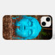 couverture protectrice conçue pour un iPhone, présentant spécifiquement une tête de Bouddha bleu comme son illustration principale. Ce design particulier fait partie d'une collection de l'artiste Mark Ashkenazi, connu pour avoir intégré l'imagerie Bouddha dans différentes formes artistiques, y compris les pochettes téléphoniques.