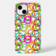 Ce boîtier téléphonique a un design géométrique de trois cercles imbriqués et répartis dans le design en plusieurs couleurs.
