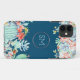 Ce boîtier téléphonique est décoré dans un style floral moderne avec un monogramme en faux or sur un arrière - plan bleu océan avec des cactus, des fleurs succulentes et des fleurs de corail. Personnalisez-le avec vos propres initiales.